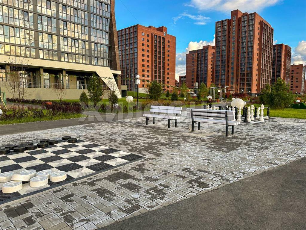 В квартире сделан качественный ремонт в светлых тонах. Высота потолков - 2,8 м. В общую площадь 29,8 кв. м входит лоджия 6,2 кв. м с панорамным остеклением. Окна выходят на запад, откуда открываются шикарные закаты по вечерам и виды на новый парк Кандинского с красивым ландшафтным дизайном, малыми архитектурными формами и озером с фонтаном.